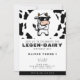 Cool black and white cow print 1st birthday party invitation with cow wearing sunglasses. Personalize it with your event details.