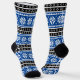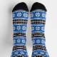 Cool custom Nordic snowflake pattern men's socks. Cute Holiday gift idea for friends and family. Black and blue or custom background colours. Funny design for the winter. Personalize with name or humourous quote optionally. Fun presents for guys. One size fits all. Perfect for dad, husband, brother, uncle, boyfriend etc.