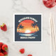 These cool sunrise beach party paper napkins feature your personalized group name for a family reunion or trip to the island of Maui Hawaii. Cute personalized decor with an orange sun over the blue ocean waters of your cruise or coastal destination.