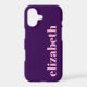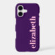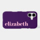 This dark purple phone case is budget friendly. You can edit the light pink text to show the correct name or monogram.
