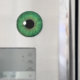 Green Eye Iris © Sunny Mars Designs. Cool, amusant imprimé sur mesure vert eyeball nouveauté rond frigo ou aimant frigo avec une tendance, moderne, belle, unique, monstrueux, déplaisant, bizarre et tordu illustration graphique d'un grand iris vert réaliste eyeball d'un oeil. D'autres modèles de lunettes de couleur sont également disponibles en magasin.