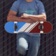 Cool Deep Red White Bright Blue Racing Stripes Skateboard