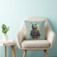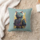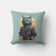 Cool Fire Splash Grey Ninja Cat Warrior Throw Pillow