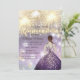 Modern firework gold sparkle girl in a ball dress invitation design.