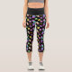 Cool fun colourful doughnuts pattern black Monogra Capri Leggings