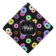 Cool fun colourful doughnuts pattern black Monogra Graduation Cap Topper