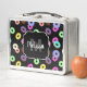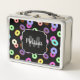 Cool fun colourful doughnuts pattern black Monogra Metal Lunch Box