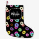 Cool fun colourful doughnuts pattern black Monogra Small Christmas Stocking