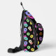 Cool and fun colourful doughnuts pattern black bag. Pattern made from illustrations of many delicious pastry doughnuts with all kinds of coloured glazing, chocolate, vanilla and all the colours, blue, yellow, pink, purple, cyan..