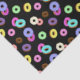 Cool and fun colourful doughnuts pattern. Pattern made from illustrations of many delicious pastry doughnuts with all kinds of coloured glazing, chocolate, vanilla and all the colours, blue, yellow, pink, purple, cyan..