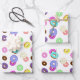 Cool fun colourful doughnuts pattern white wrapping paper sheet