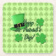 Cool fun Green top hat Shamrocks Patricks Day Square Paper Coaster