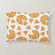 Cool and fun pizza slices pattern on white for birthday pizza party. Juicy vector made pizza with crunchy crust, cheese, salami, champignon mushrooms, olives and a sprinkle of oregano.