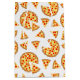 Cool and fun pizza slices pattern Gift Bag for birthday pizza party. Juicy vector made pizza with crunchy crust, cheese, salami, champignon mushrooms, olives and a sprinkle of oregano.
