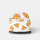 Cool and fun pizza slices pattern on white for birthday pizza party. Juicy vector made pizza with crunchy crust, cheese, salami, champignon mushrooms, olives and a sprinkle of oregano.