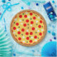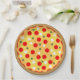 Juicy vector made pizza with crunchy crust, cheese, salami, champignon mushrooms, olives and a sprinkle of oregano.