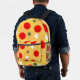 Cool fun pizza pepperoni mushroom Printed Backpack. Juicy vector made pizza with crunchy crust, cheese, salami, champignon mushrooms, olives and a sprinkle of oregano.