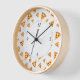 Cool and fun pizza slices pattern on black and white clock face. Juicy vector made pizza with crunchy crust, cheese, salami, champignon mushrooms, olives and a sprinkle of oregano.