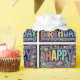 Amazing cool colourful planets and stars and block letter happy birthday text abstract art gift wrap is popular with astronomers and people who love outer space and planets and science fiction.