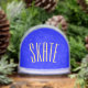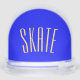 This festive sporty winter design features tall, slim, centered, curved SKATE text against a bright royal blue background.