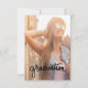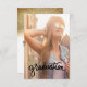 Celebrate your graduation with this simple script photo graduation party invitation. This graduation card design has a photo at the front and grad party invitation at the back on gold glitter ombre background.
