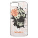 Cool gothic skull and orange rose custom iPhone 7 case cool vector design, featuring a grunge distressed skull with some flourish swirls and halftone elements in black and a rose in orange. There is a pale rose on the background and some text in a vintage font. Fully customizable you can change text and font.