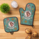 Celebrate your amazing dad with our modern teal oven mitt and potholder set, featuring beautiful hand-drawn illustrations by Nathalie Portet. Decorated with seahorses, jellyfish, starfish, and vibrant red coral designs in black ink, this set brings a nautical charm to your kitchen. The set includes a charming nautical rope frame to upload and showcase your own photo with Dad. In a vintage scroll beneath the frame, there is an editable text that reads, "Best Dad Ever!" Change it to "Dad's Kitchen" or "We Love You, Daddy", or to any message you wish. This stylish and practical set combines sentimentality with functionality, making it the perfect gift for the culinary Captain of your family. Ideal for Father's Day, Dad's Birthday, Grandparent's Day, Grandfather's Birthday, etc.