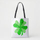 Add a festive touch on St. Patrick's Day with this tote bag that features a green shining shamrock leaf pattern.