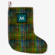 This cool Christmas stocking has traditional Scottish tartan pattern featuring, on front, a green and black geometric print and a simple, customizable monogram. It's perfect for Christmas!