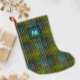 Cool Green Tartan Gingham Pattern Black Monogram Small Christmas Stocking
