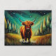 Beautiful highland cow in forest meadow postcard. Easily customize the message for your needs.