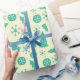 "Cool Holiday Snowflakes Christmas Tree Ornaments Wrapping Paper" combines a playful mix of turquoise Christmas trees, ornaments, and snowflakes, perfect for wrapping gifts that feel vibrant and fun.