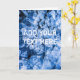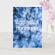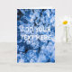 Closeup view of the natural ice. A pile of small pieces of ice of blue colour. Customizable greeting card. You can change or delete two template texts on the front and inside the card.