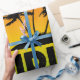 Fun wrapping paper printed with rastafarian flag colours in a tropical sunset behind black silhouette palm trees