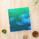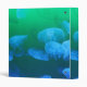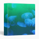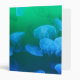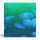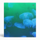 Atmospheric photograph of transparent jellyfish swimming in a blue / green sea.
