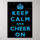 Cool KEEP CALM AND CHEER ON Posters with pretty glassy look Bluish Turquoise lettering and blacked textured background. This is an off take of the super famous and popular British Wartime Poster, Keep Calm and Carry On to uplift lift the spirits of the public during World War II. I,ve created many more gifts foe Cheerleaders with this famous vintage quote. Please visit my shop.