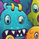Cool kids monster tiled pattern unisex wallpaper