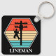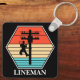Beautiful gift idea for every lineman showing a vintage sunset retro design showing a working lineman.