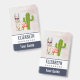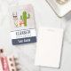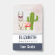 Personalized name badgeillustrated with a cute llama wearing heart-shaped sunglasses. A mushroom and a green cactus complete the illustration. Whimsical and cute.