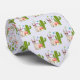 A light blue tie with a pattern illustrated with a cute llama wearing heart-shaped sunglasses. Some stars, a mushroom and a green cactus complete the illustration. Whimsical and cute.