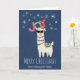 Cool Llama in Santa Hat with Snowflakes Christmas Card