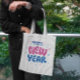 These bags were super cute (I purchased 3). The material is more of a canvas look & feel. The colour of the bag is slightly off white, but the letters look exactly as pictured. I took 3 photos in different lighting. Would recommend! I liked how there was an option to choose the font and colour of the name. The words are legible and the colours are exactly as pictured.