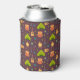 Can cooler designed with a cute camping pattern. Camping themed items such as an orange campfire, a green tent, an acoustic guitar and other nature
