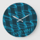 Cool Luminous Blue Wave Pattern Custom Text Large Clock