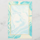 Stylish and sophisticated stationery paper with an elegant faux marble pattern with swirling colours in turquoise blue and cream colours. A semi-transparent frame with a gold border layered over top.