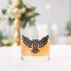 Beautiful, ornate jewel coloured metalized owl art on personalized glass.