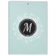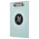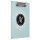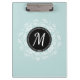 Stylish clipboard with mint blue floral wreath and personalized monogram.