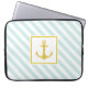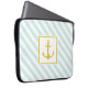 Cool Mint White Stripes Golden Anchor Laptop Sleeve
