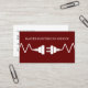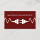 Newly created Electrician business card template in a bold and simple two side clever design with graphic image of an electrical cord and plug with your business name featured on the front and your contact information laid out on the flip side. Created for an electric contractor or independent electrician service.