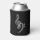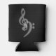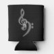 A cool and classy simple black/white music themed can cooler - white treble and bass clefs against a textured black background. Music Love.